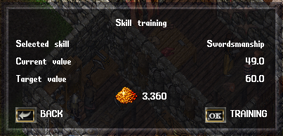 Skill training can be bought at NPCs. Both increase (to a maximum of 120 individual with power scrolls or 700 of skill cap) or lower (to a minimum 0) of the skill value is possible.